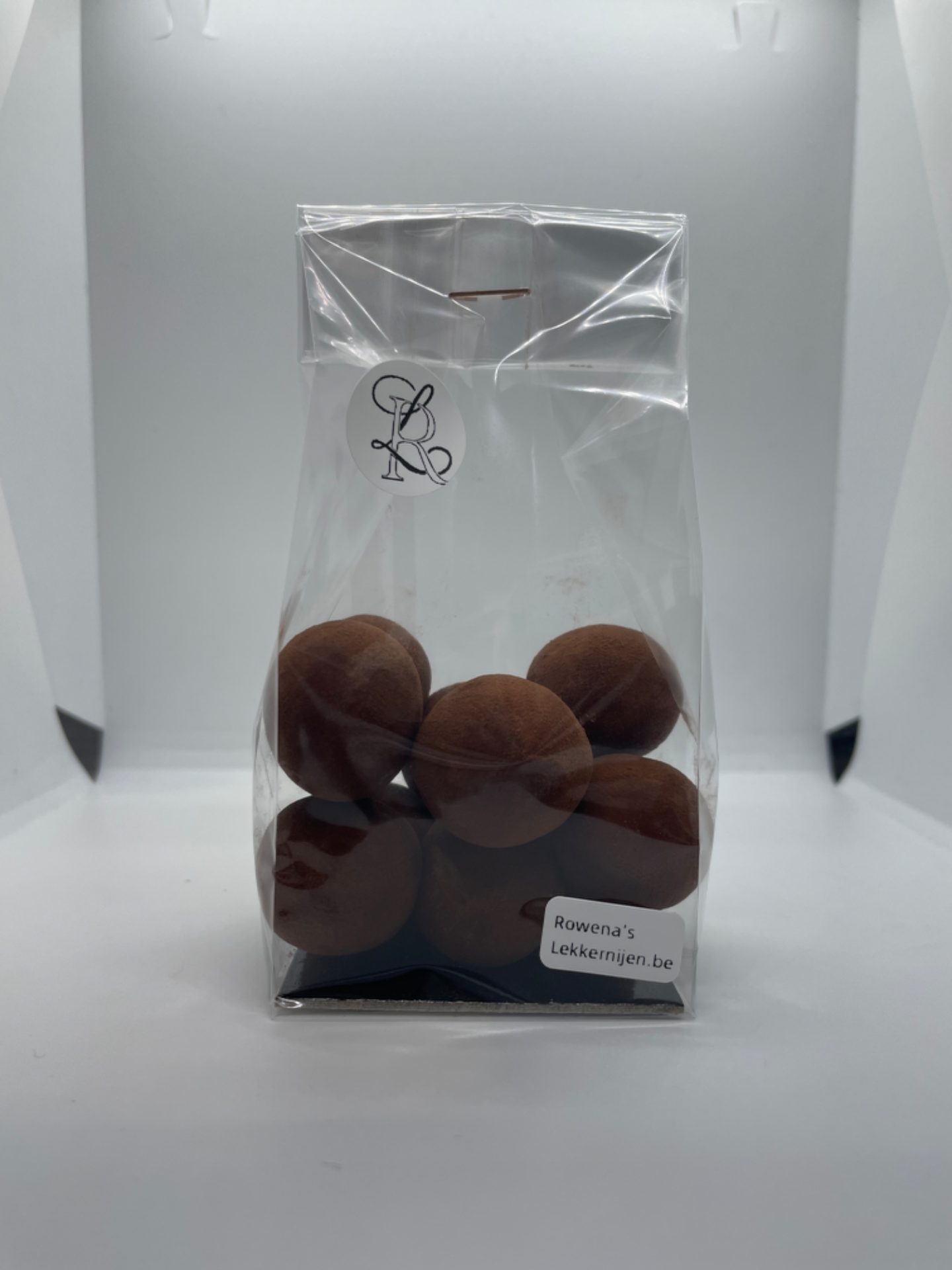 marsepein bolletjes omhuld met pure chocolade en cacaopoeder